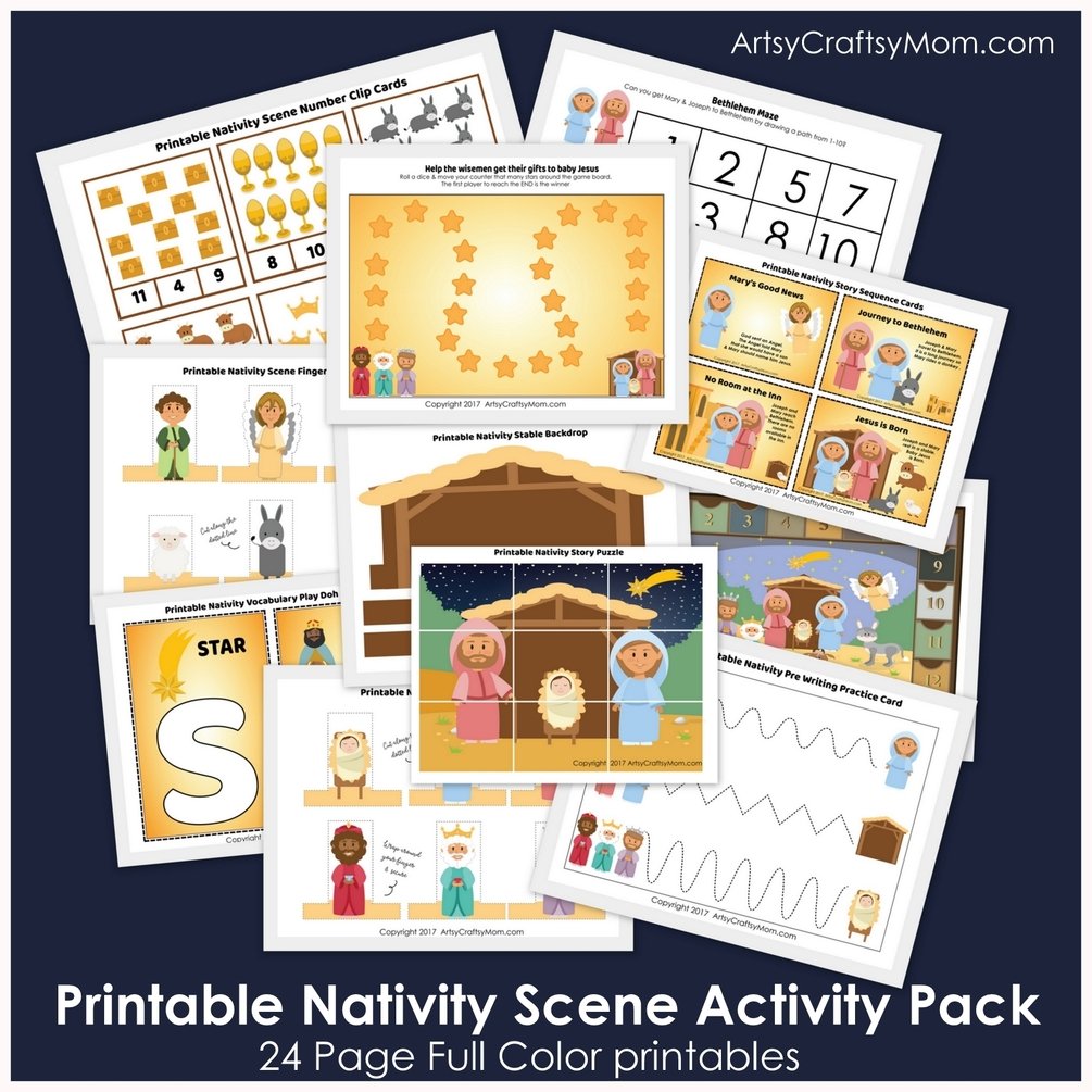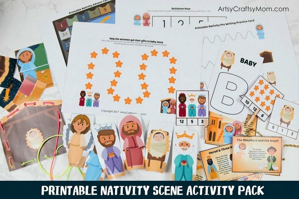 Nativity Themed Printable Activity Pack - Includes Finger Puppets, a Backdrop, Puzzles, Number Match, Games, Playdoh mats, Story Sequencing, Lacing Cards & an Advent Calendar
