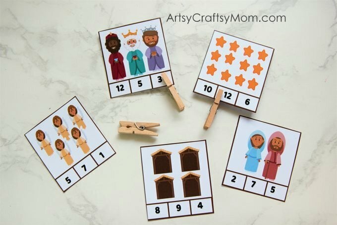 Printable Nativity Scene Number Clip Cards